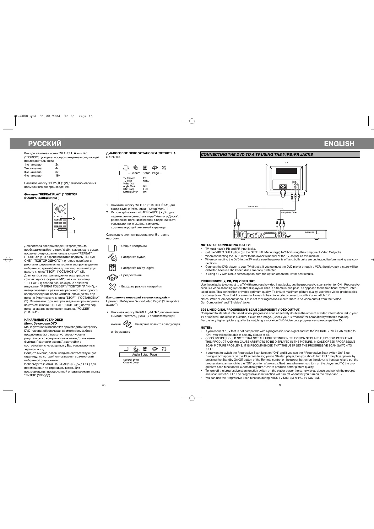 progressive scan switch to the “ON” position afterwards.Next time whenever you turn on the player and TV, the pro-