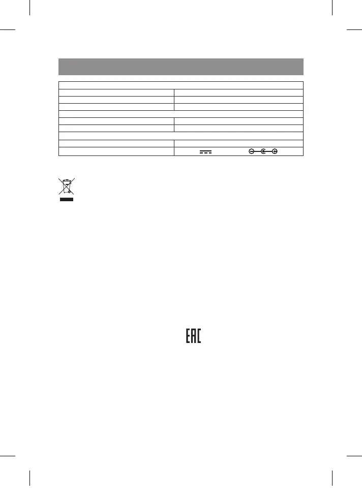 Қуат көзінің кернеуі 100-240 В ~ 50 Гц 0,3 А Max