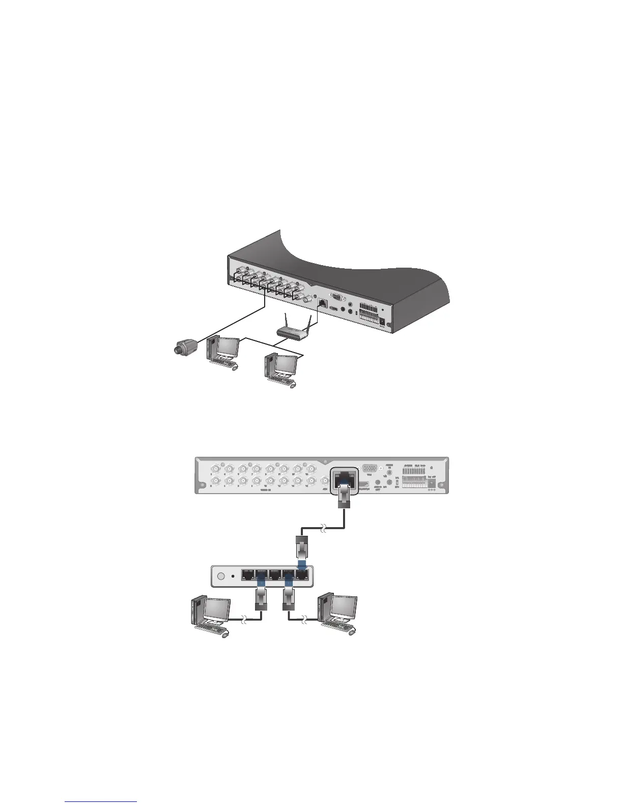 Connect a CAT-5 network cable to the DVR's [ETHERNET] port on the rear panel to a router or hub.