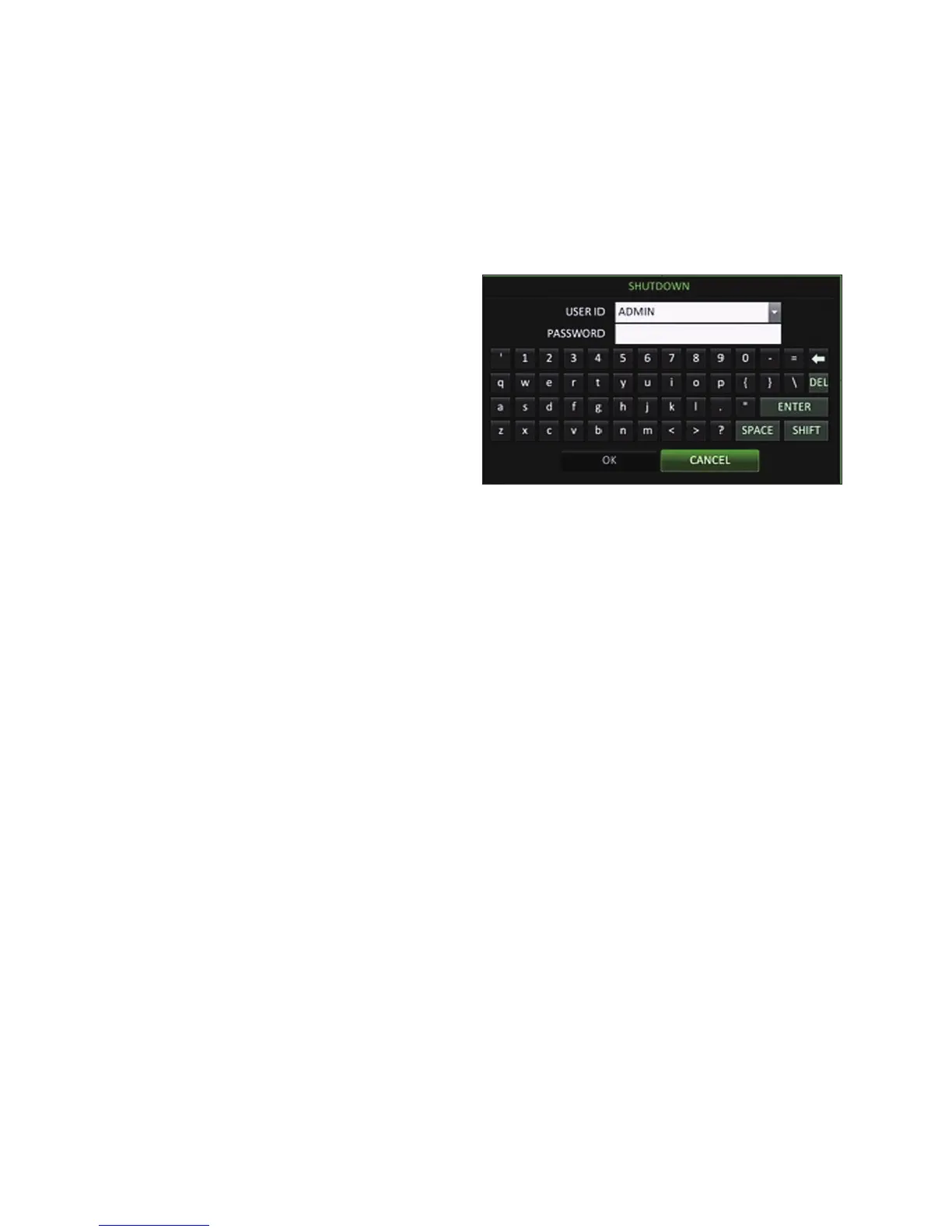left corner of the screen to <SHUTDOWN> the system,