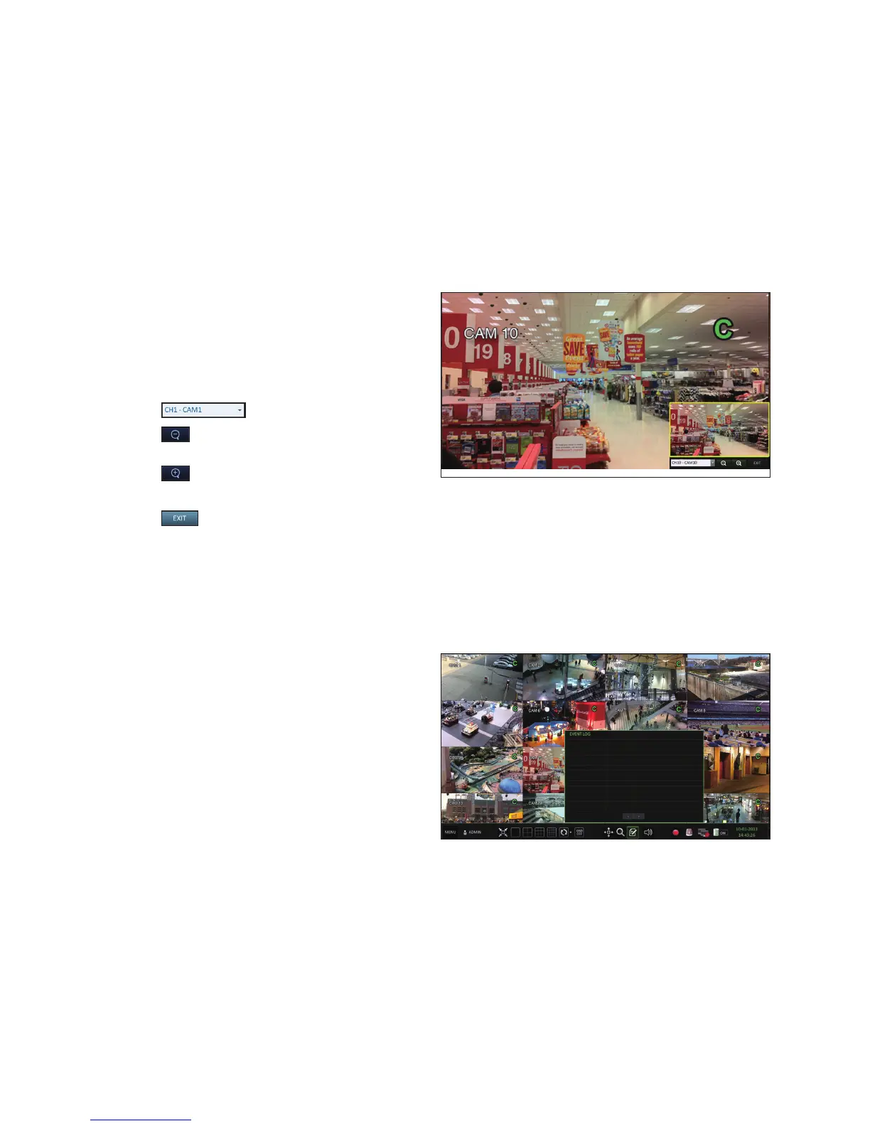 Zooming will enlarge the video of the selected channel. If no channel is selected, channel 1 will be zoomed.