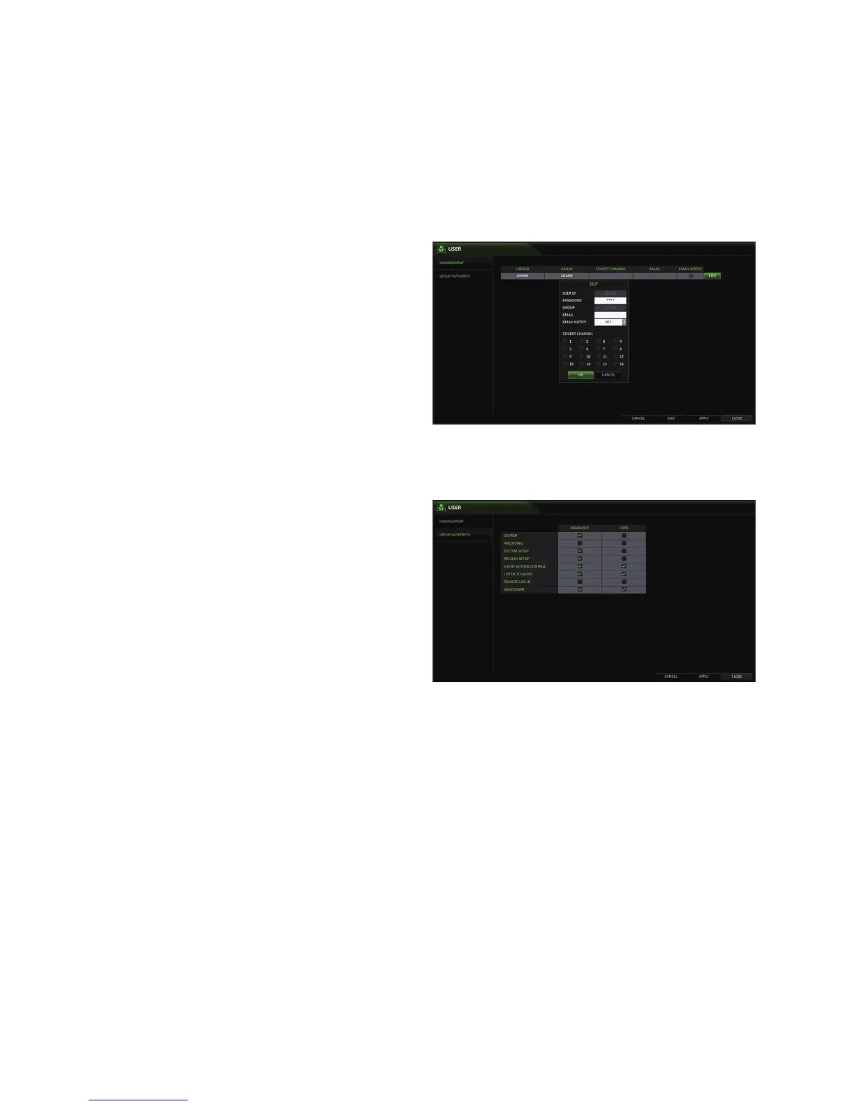 From <SYSTEM SETUP> - <USER>, select <GROUP