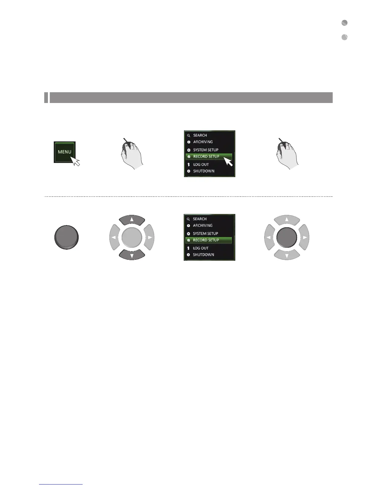 You can configure the record settings for the DVR. Only authorized users can access the Record Setup menu.