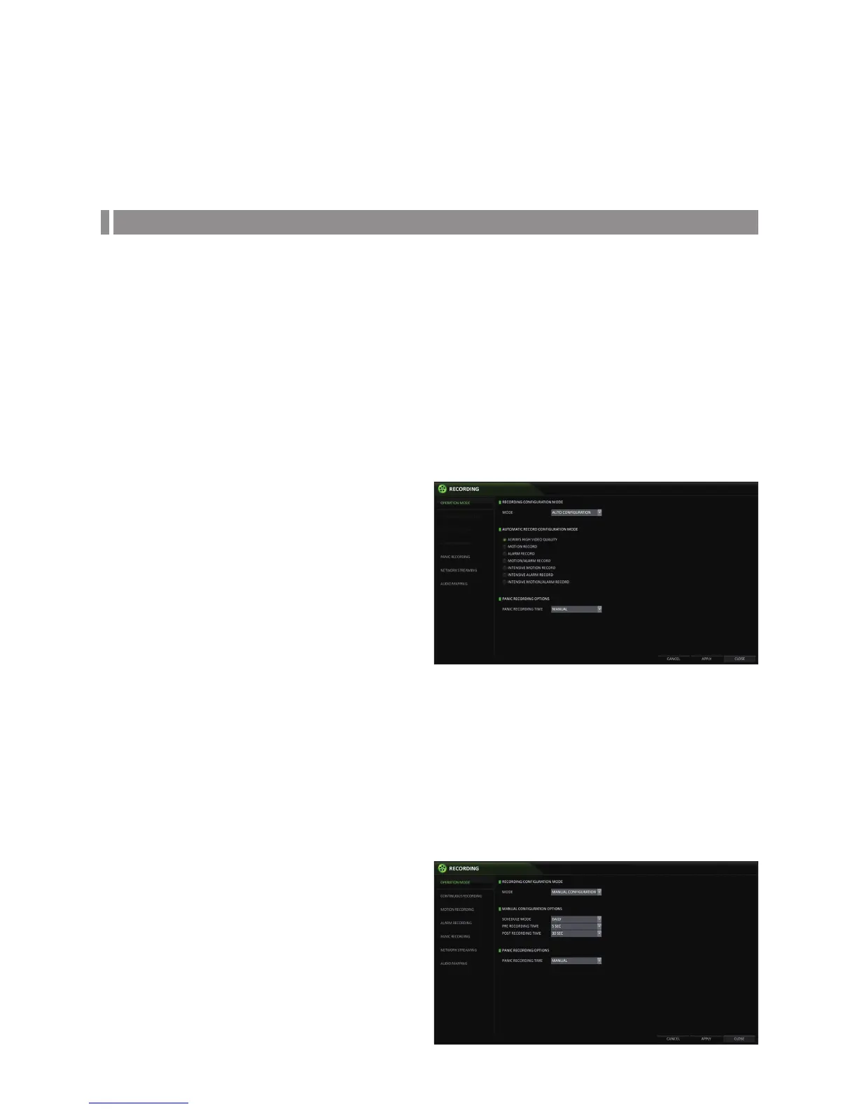 set the manual recording and panic recording options.