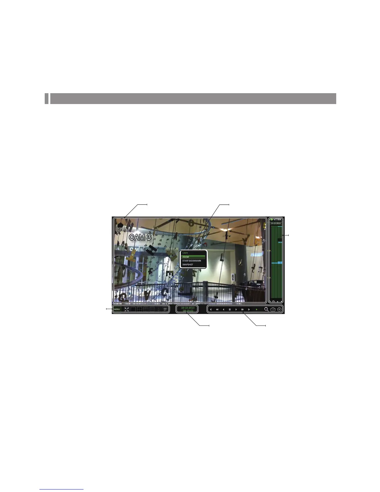 To play recorded video from the live screen, move the cursor to the right margin to display the Timeline.