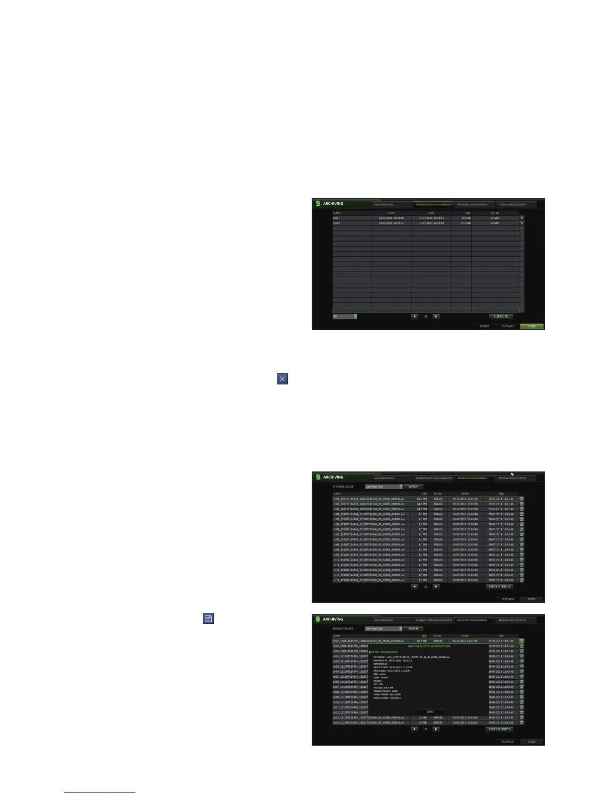 You can play archived data from a USB storage device. In addition, you can check the details and integrity of the data.