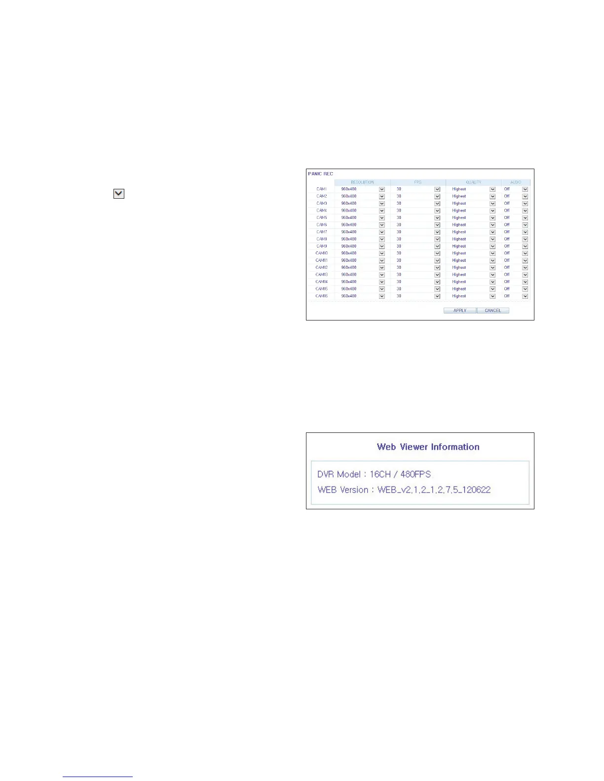 Click the <INFORMATION> tab to check the model name of the DVR as well as the web viewer version.