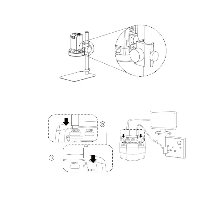 and power. Microscope will turn on when Power in.