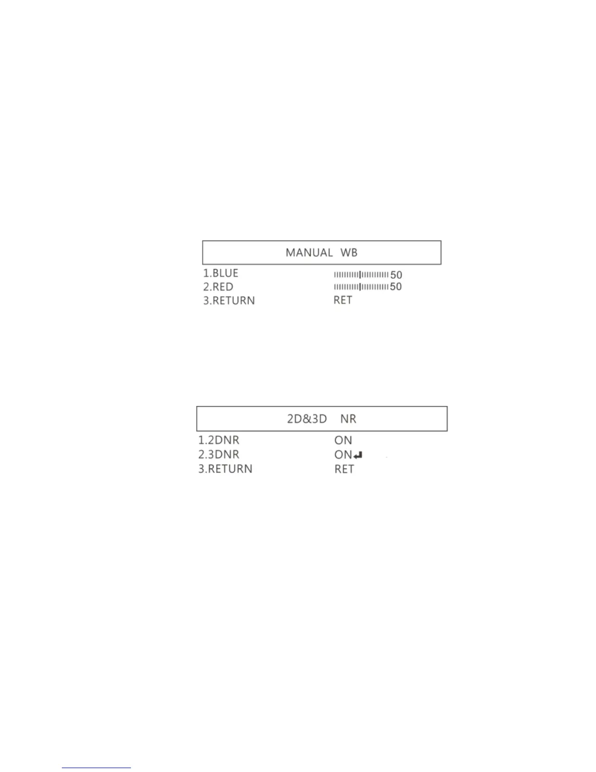 (2) 3D NR:ON/OFF, Motion Adaptive 3D NR. See below: