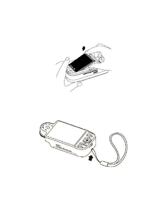 (4) Install Wrist Strap: Remove battery cover. Hang the wrist