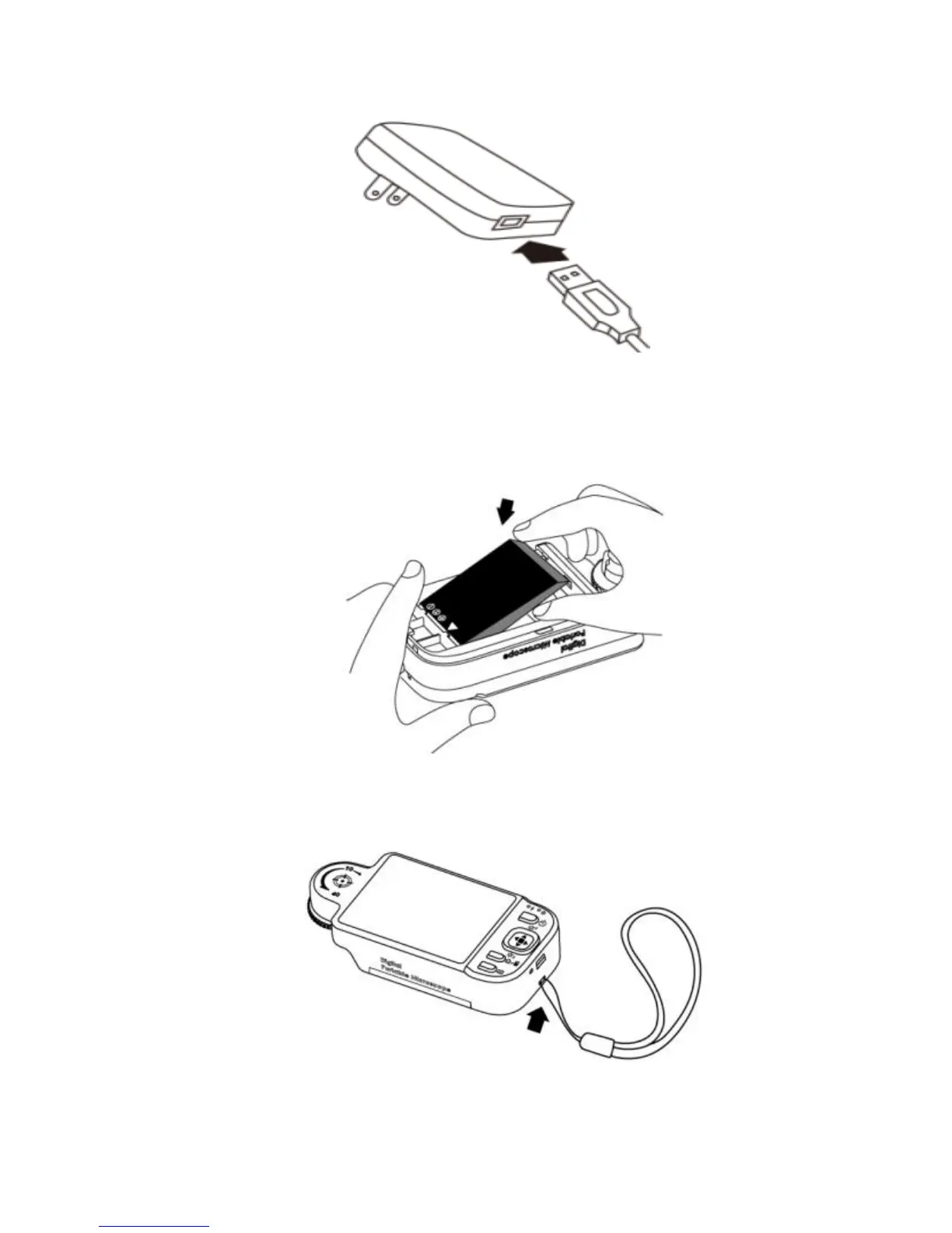 (4) Install Wrist Strap: Remove battery cover. Hang the wrist