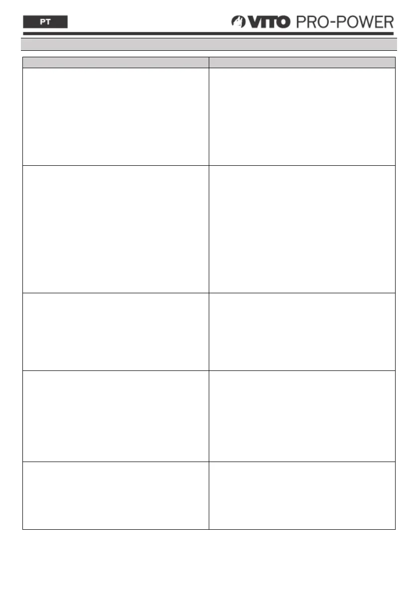 • Verificar o cabo de alimentação, ficha de ligação,