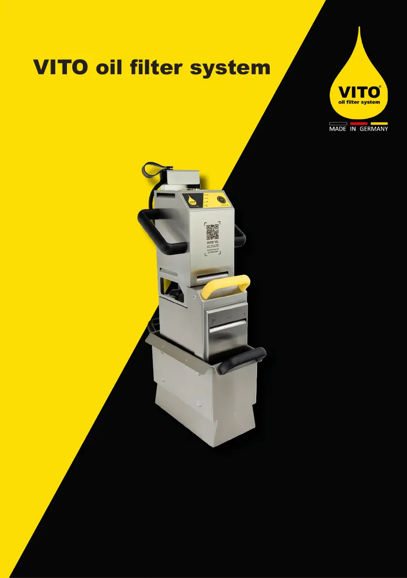 If oil is splashing sideways or at the back of the pump-filter unit (11) of your VITO Water Filtration System, it could be due to a full particle filter, requiring a change. Also, ensure the filter paper is inserted correctly with overlap as described. If problems persist, there may be too much space between the filter cover and pump-filter unit (11), or the filter cover might not be closed properly, and it is best to contact customer service.