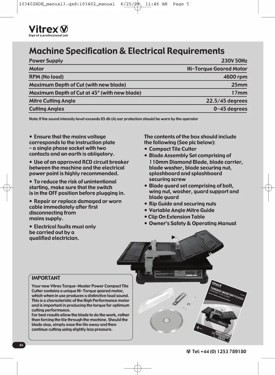 Vitrex TORQUE-MASTER POWER - Machine Specification and Electrical Requirements