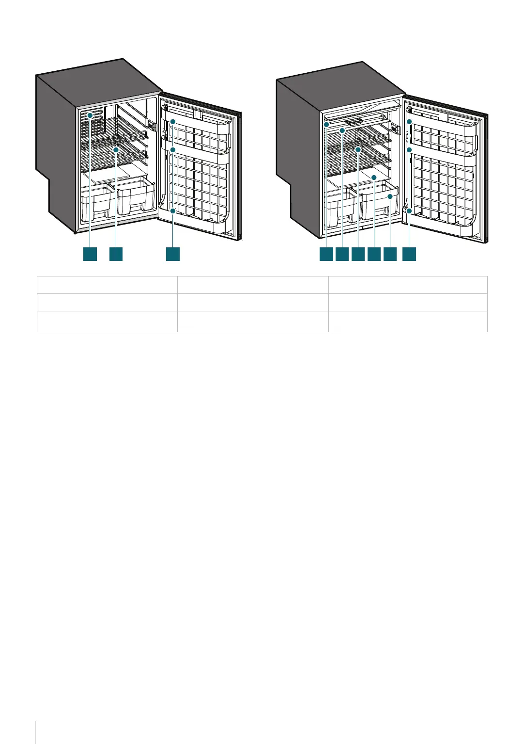 A) evaporatore orizzontale C) scatola termostato F) cassetto portafrutta (*)