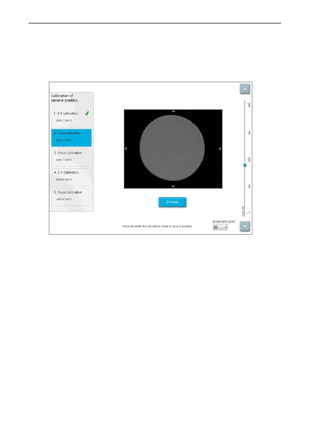touch screen to drag the well to the centre. Adjust the focal plane so that the bottom of the