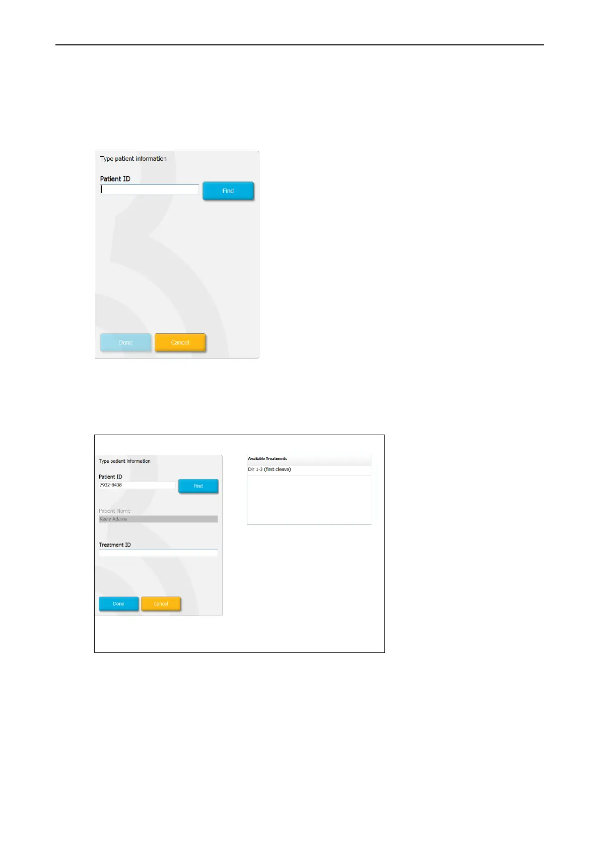 1. Enter the relevant patient ID, and press the Find button. Please be careful to select the