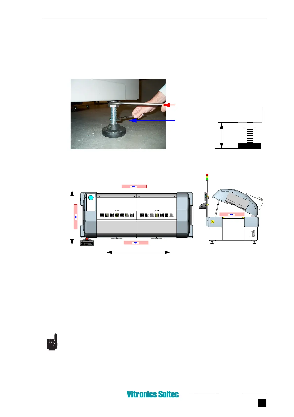 1. Adjust the threaded feet of the machine until it stands perfectly in both X and Y direction.