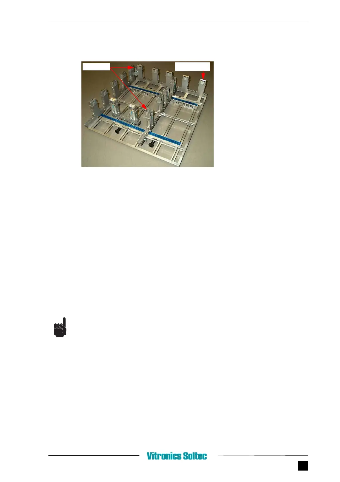 The setting of the ‘positioning pins’ in the gripper should be adjusted so that the PCB will be cen-