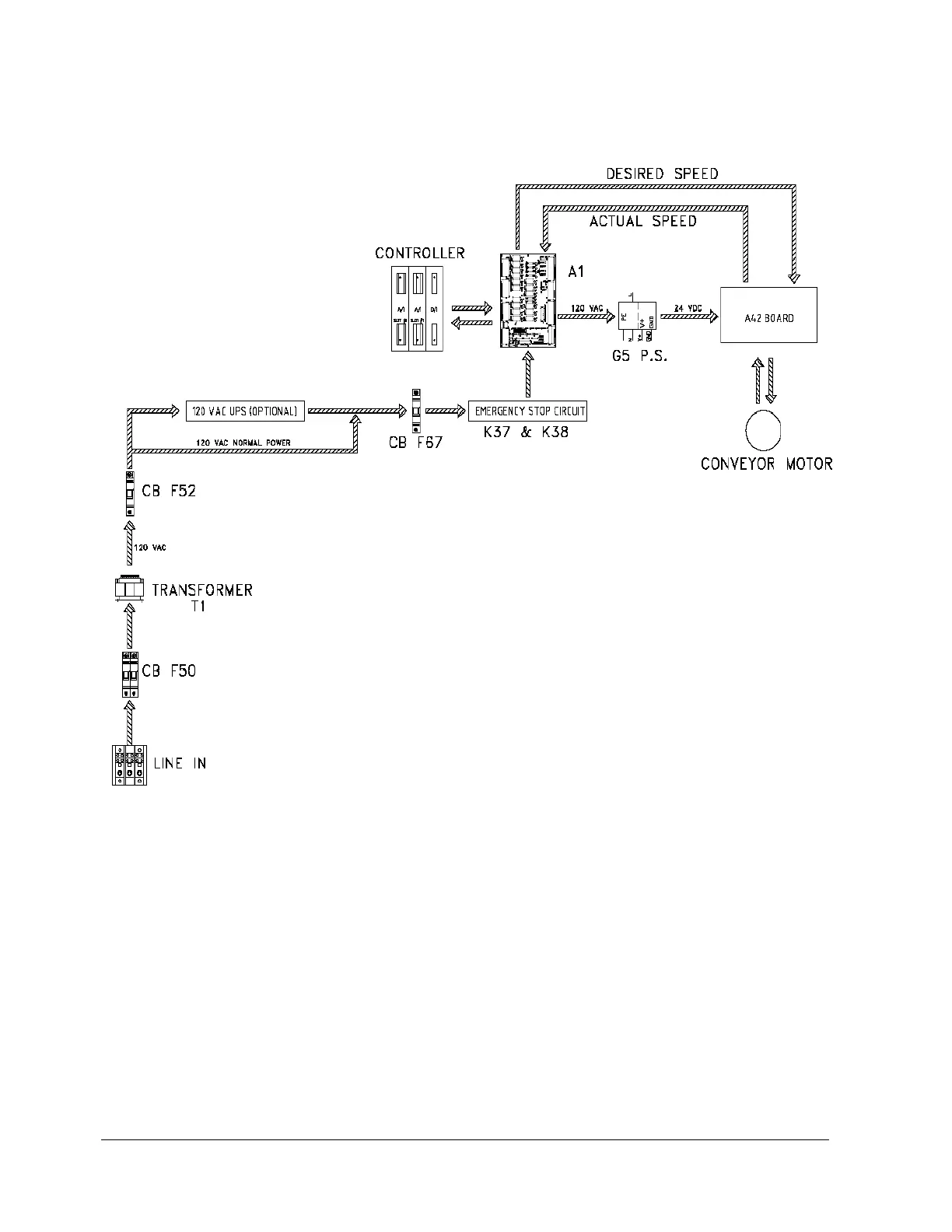 electronics to set the desired conveyor speed. The A42 board divides it in half and passes it through an Opamp to