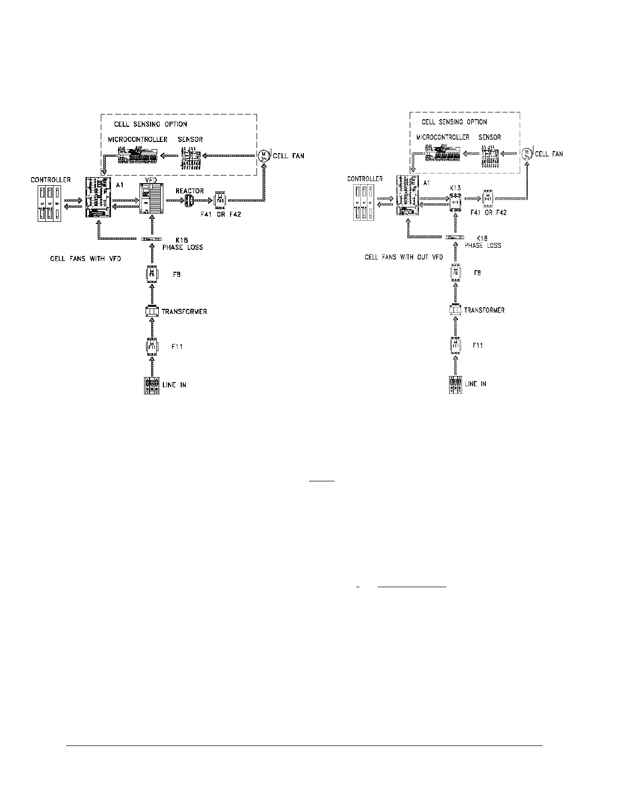 1) POWER SOURCE: 3 Phase power is provided to either the line terminals of the Fan Contactor (K13), the