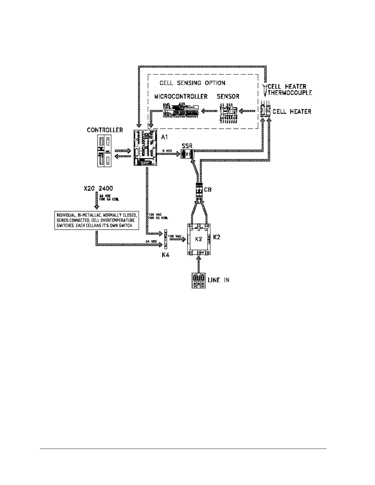 HEATER CONTACTOR (K2) coil is energized by I/0 Board Output Relay A1-K4, (see Interlocks, below) it’s