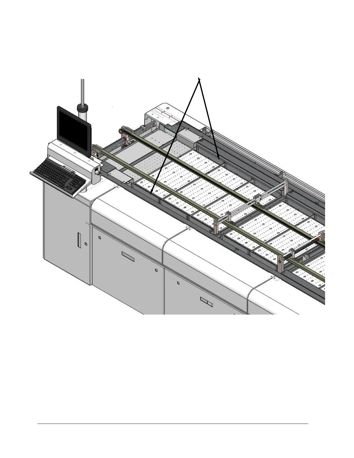 The cells are mounted both above and below the conveyor, as shown, forming a series of “Heat Zones”.