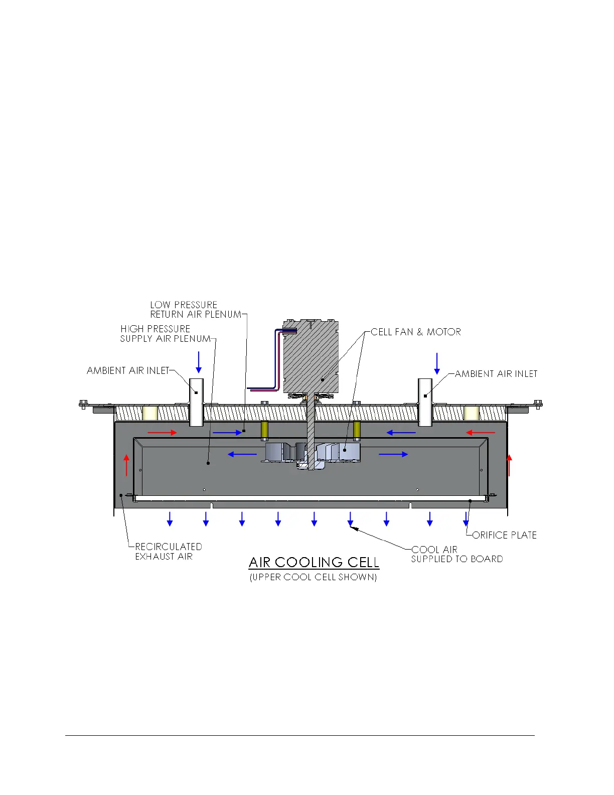 bottom cells. Air enters the inlets and mixes with the recirculated exhaust air, which in turn lowers the overall cell