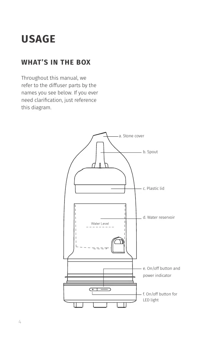 Vitruvi STONE DIFFUSER - USAGE; Diffuser Components