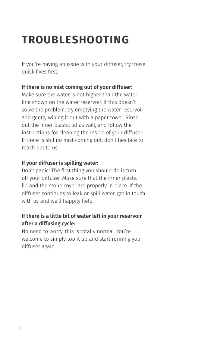 diffuser continues to leak or spill water, get in touch