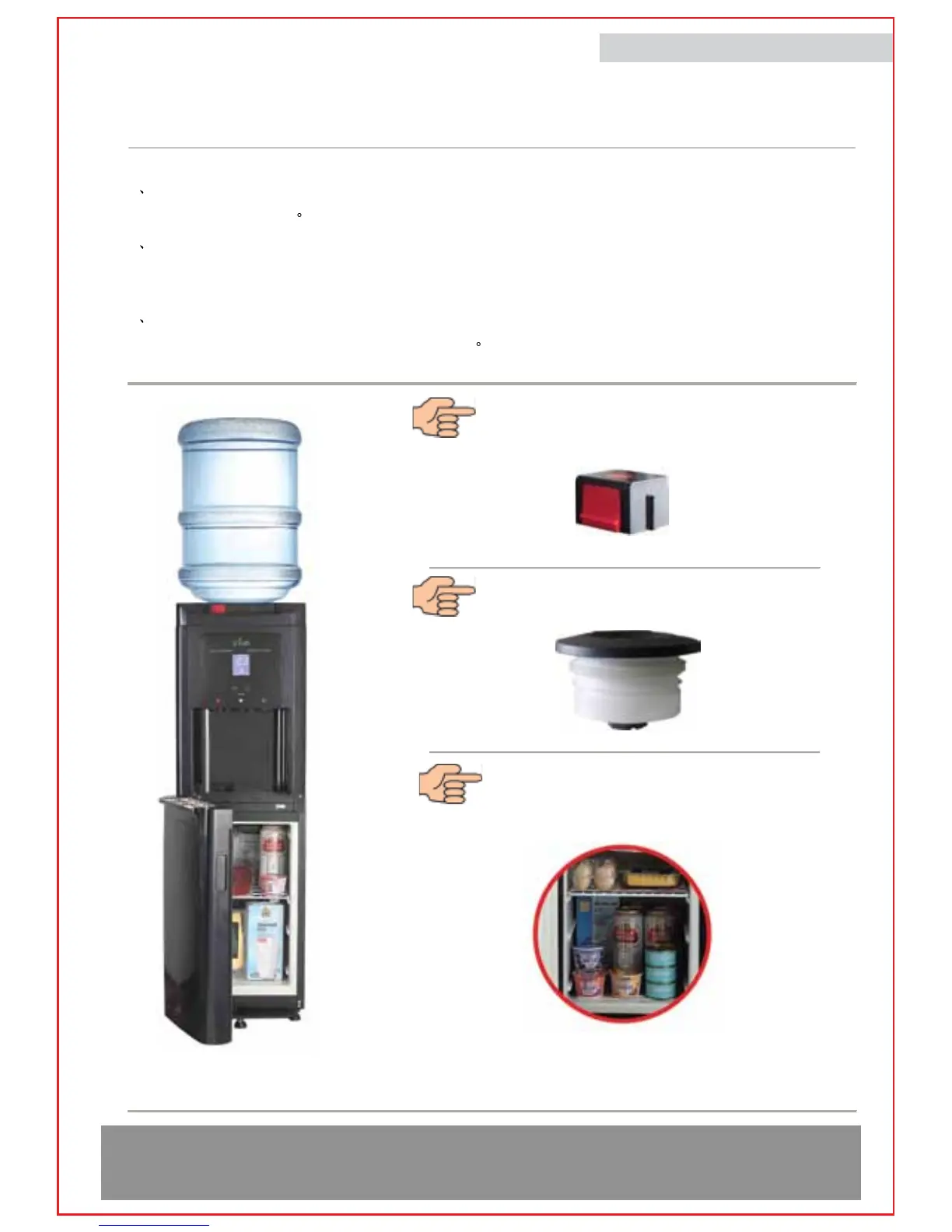 1 This water cooler can provide you Hot, Cold, room-temperature water and a fridge