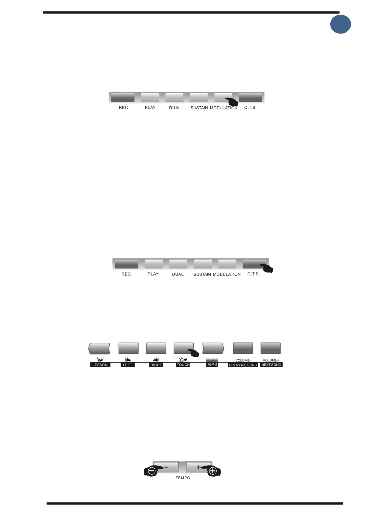 accompaniment style. Press the [OTS] button to set the automatic accompaniment tone,