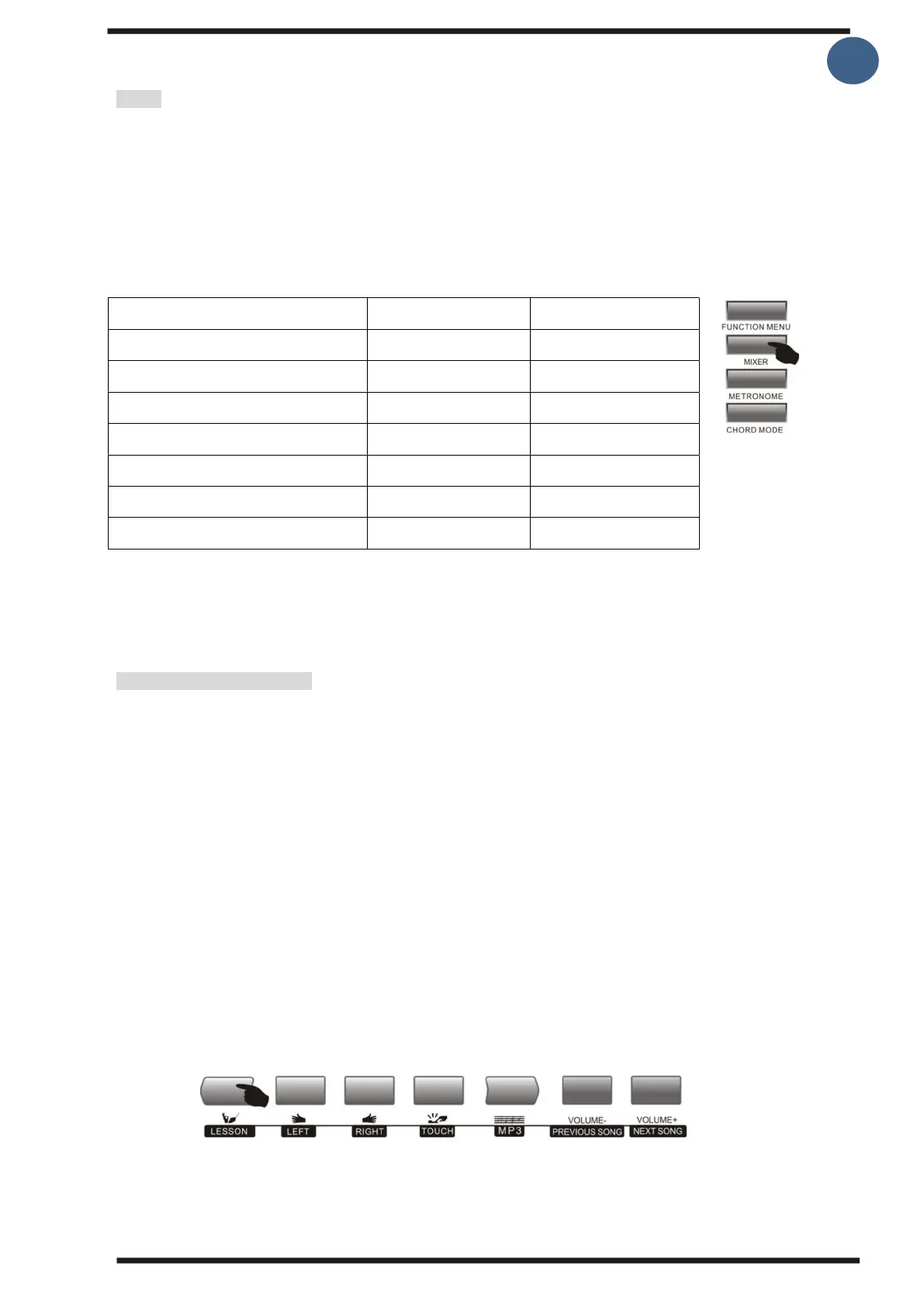 2.To select the part(s) you want to change , press the [Mixer] button until the part you