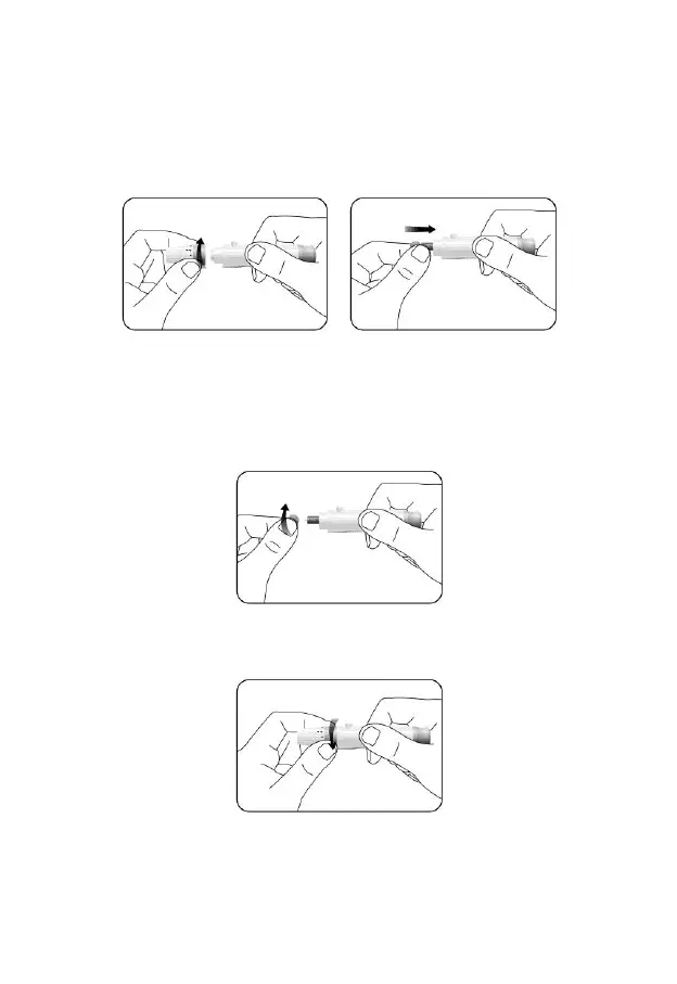 1. Unscrew the lancing device cover from the body of the lancing device. Insert a