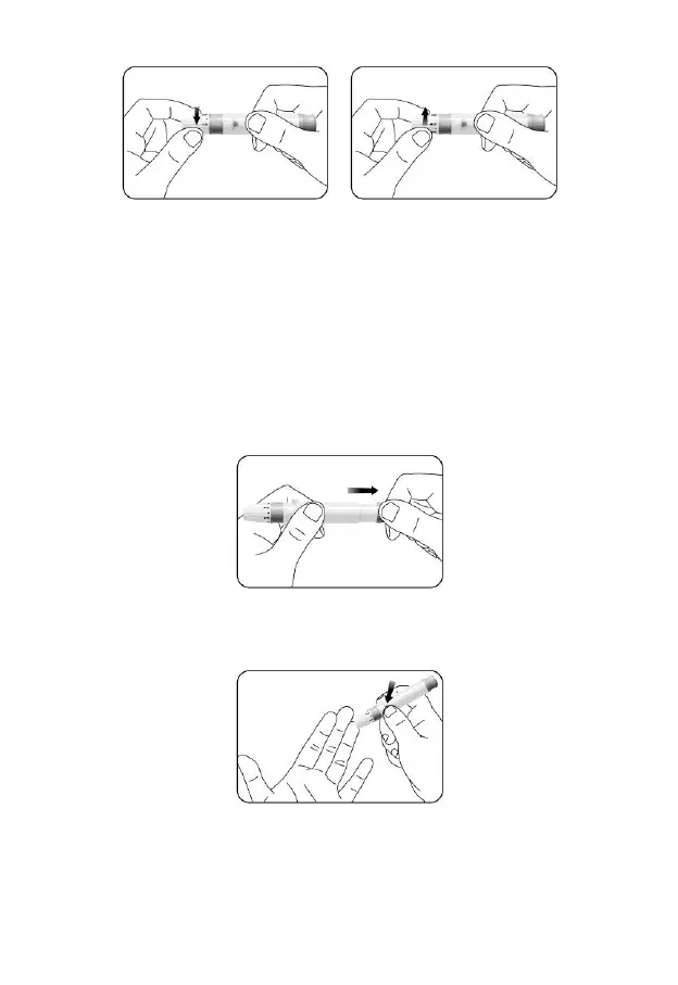 cover resting on the finger. Push the release button to prick your fingertip. You