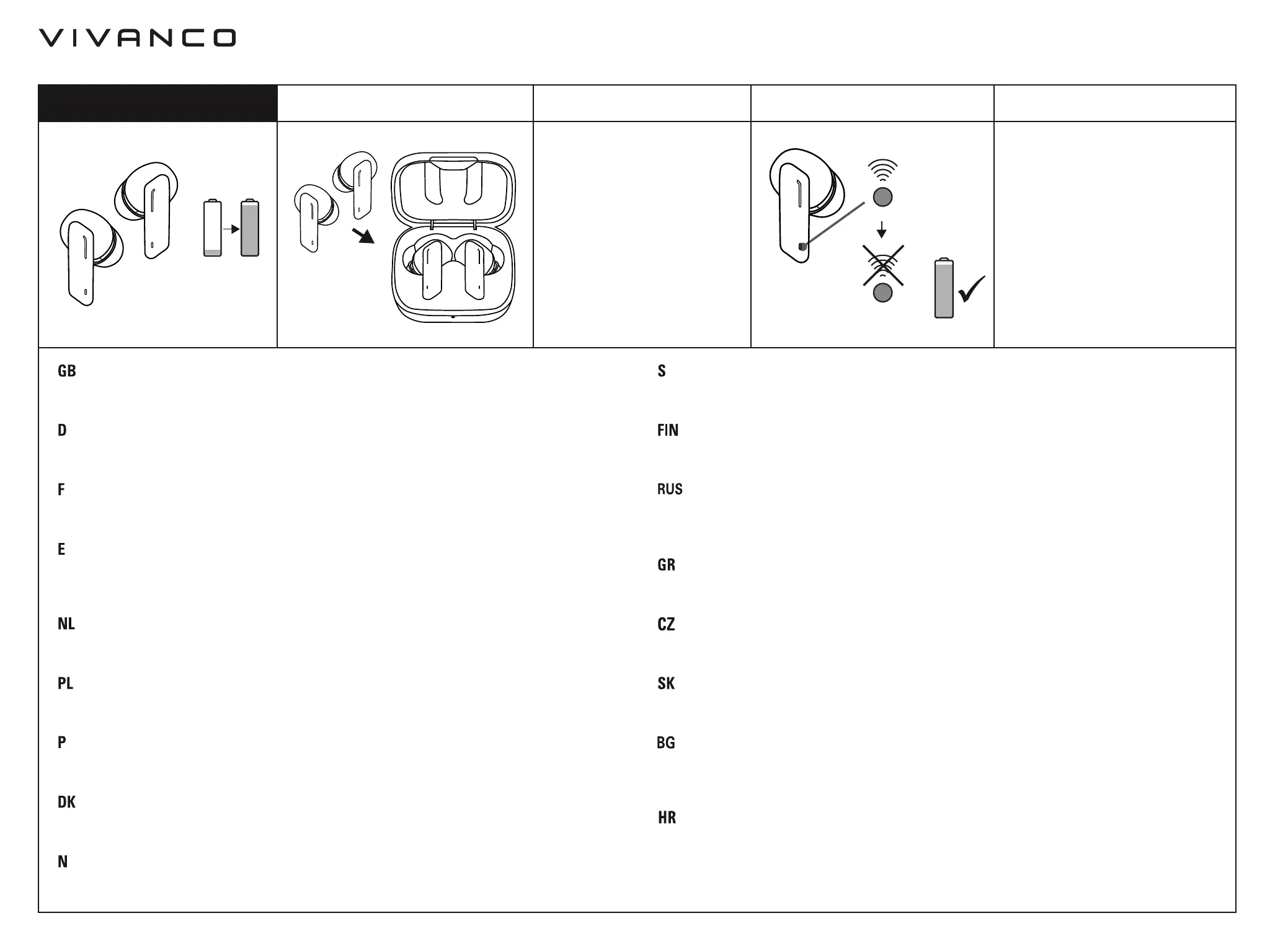 les écouteurs sont totalement chargés, les LED s’éteignent sur les écouteurs (au bout d’env. 1,5h.).