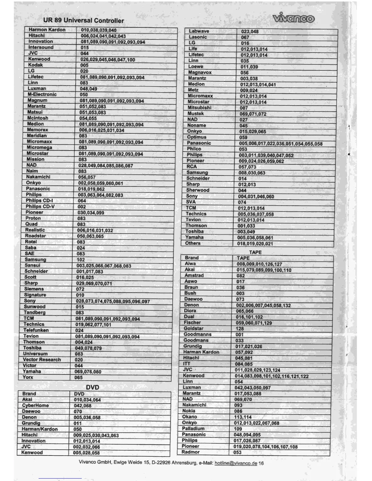 Vivanco UR 89 - DVD