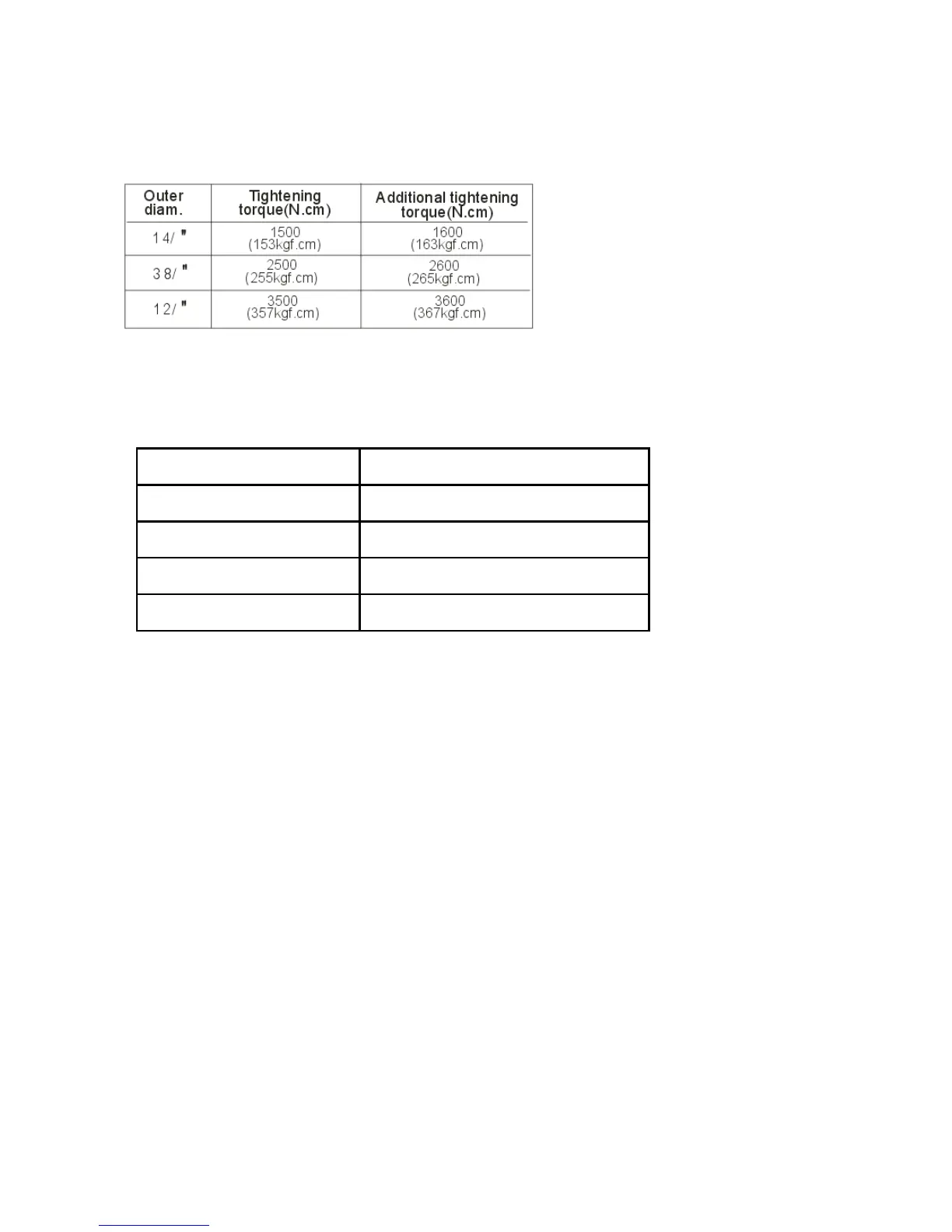 6.1 Wrench torque sheet for installation