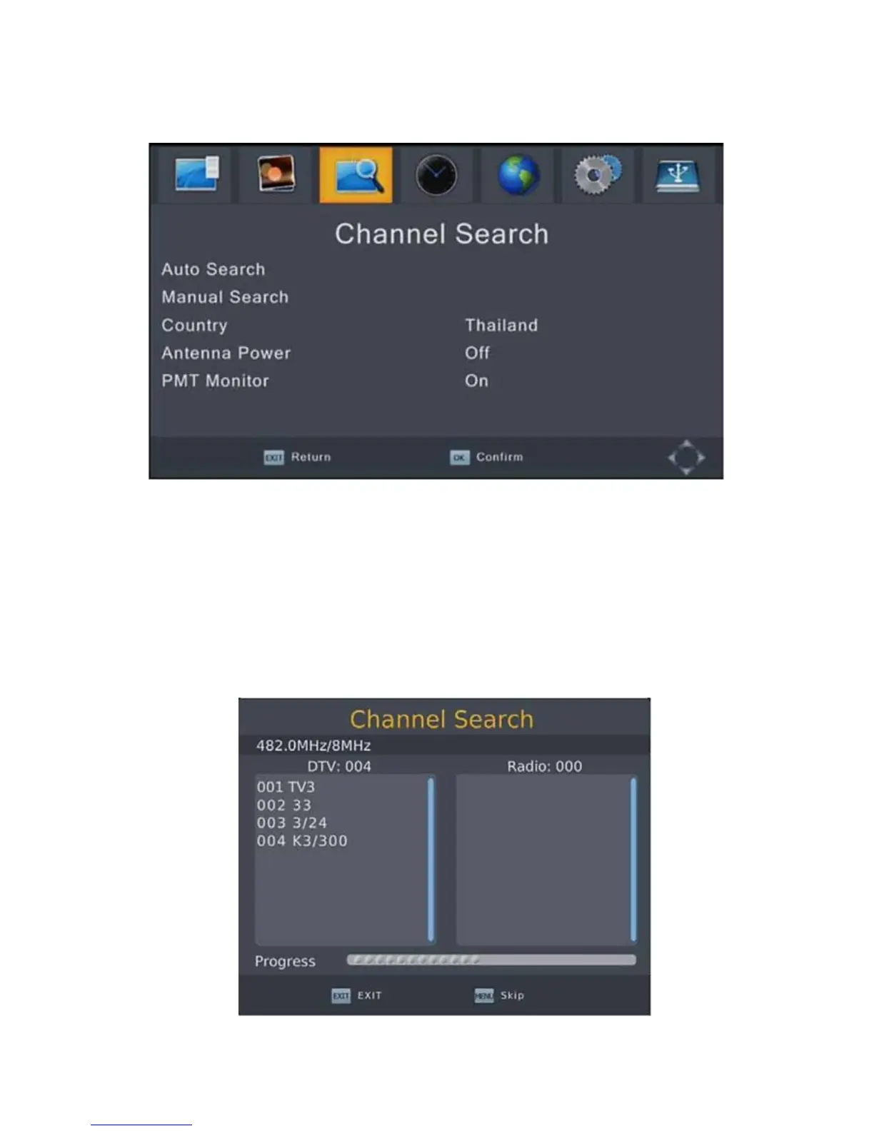 2. Për të anuluar kërkimin e kanaleve, shtypni EXIT. Ato kanale