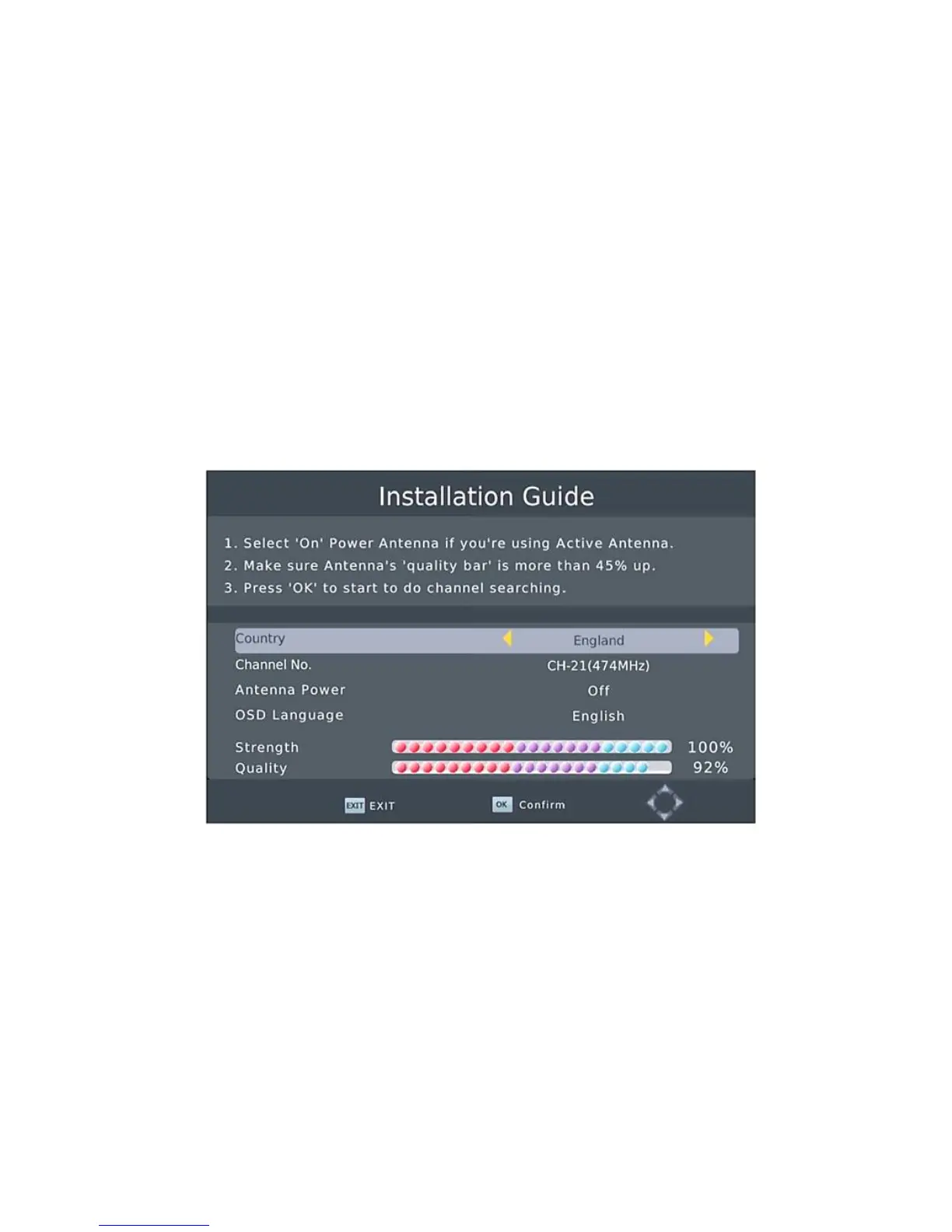 'OK' za početak pretrage kanala.