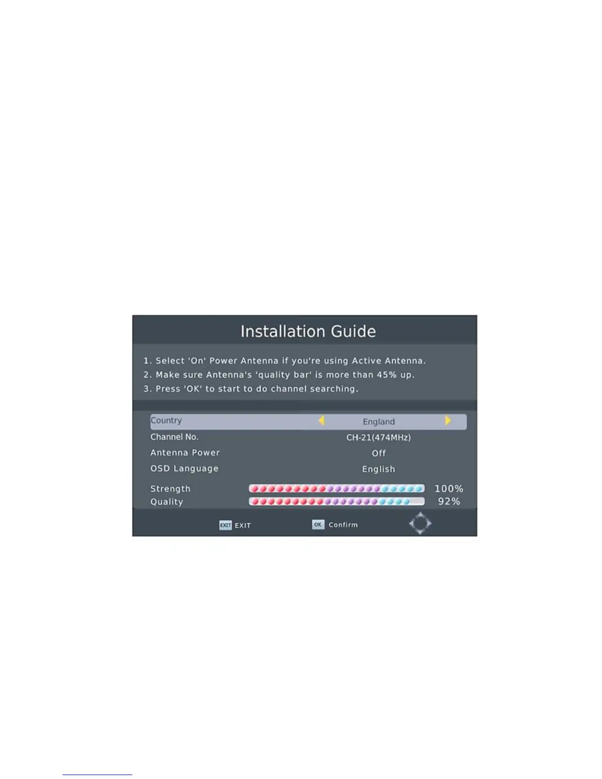 3. [Antenna Power] shtypni RIGHT/LEFT butonin për të