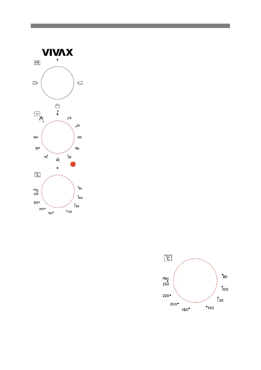 Termostat zagotavlja temperaturo 40-250 °C v pečici.