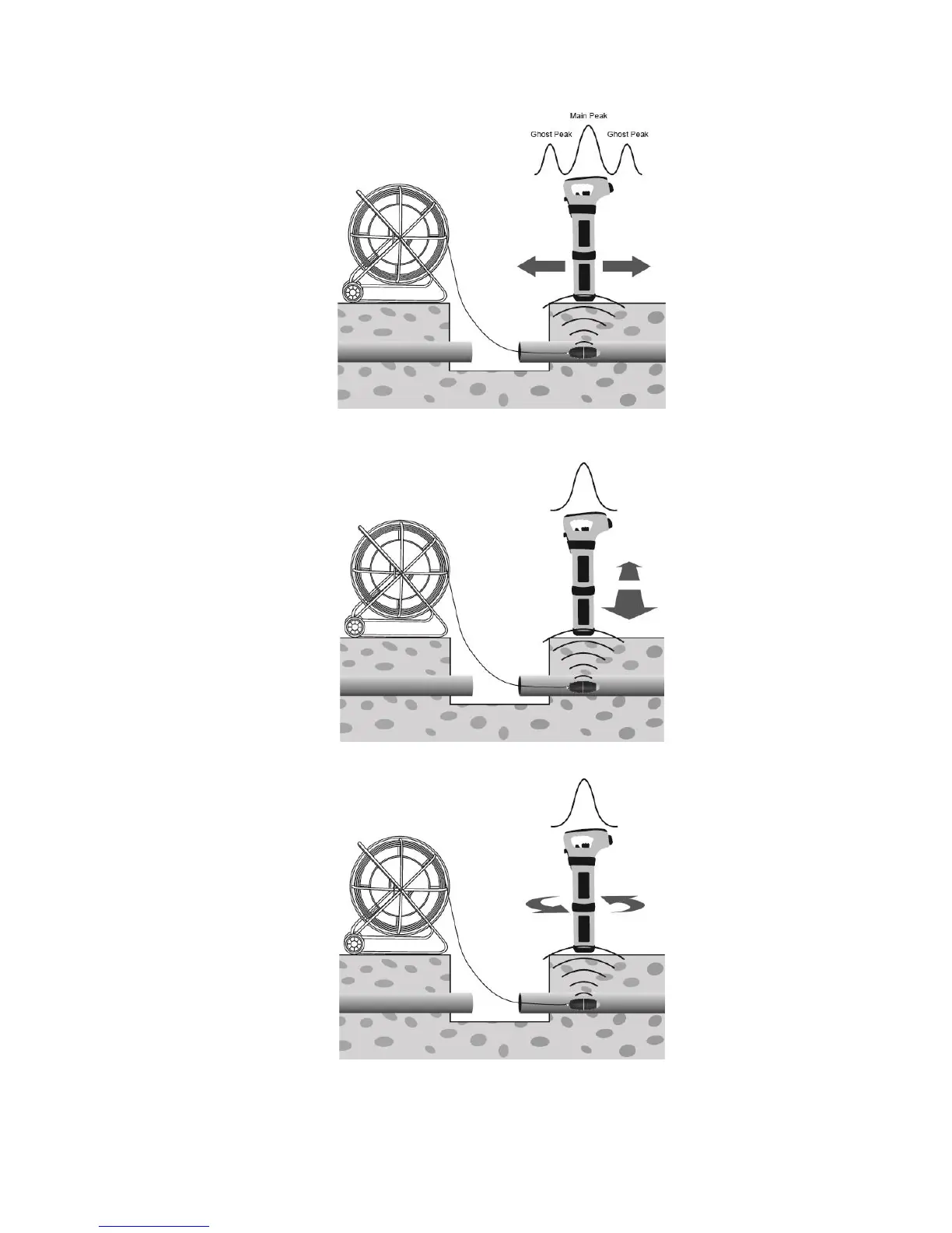5. Now sweep left and right over the Sonde to obtain a second peak. Note that there are no ghost signals