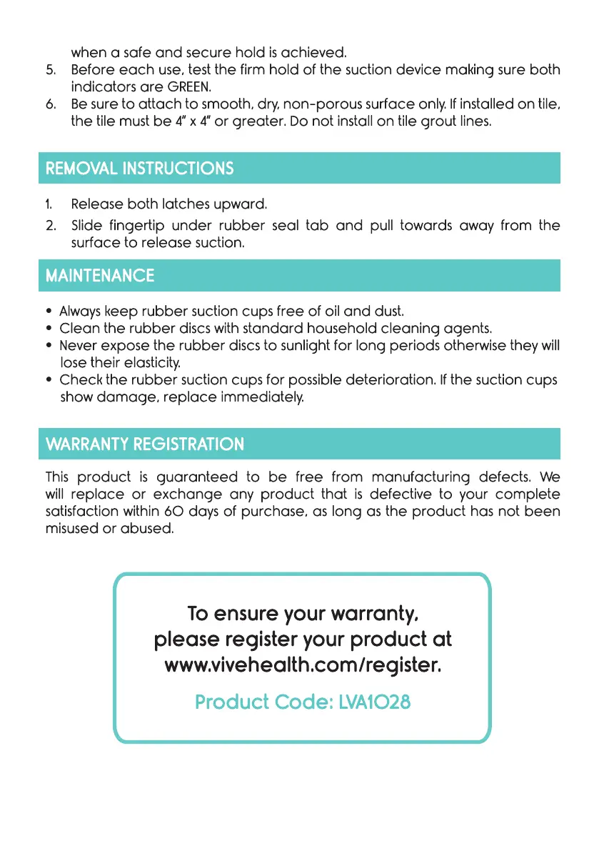 Before each use, test the firm hold of the suction device making sure both
