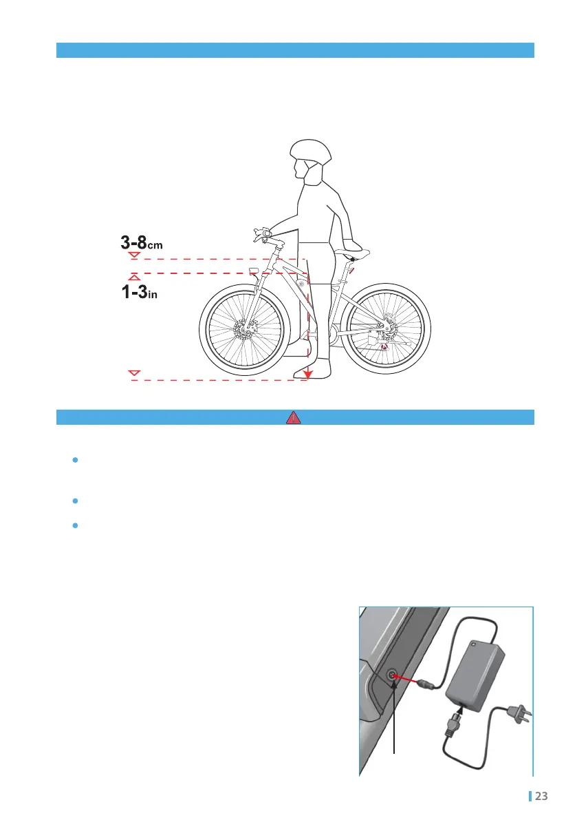 should be at least 3-8 cm/1-3 inches between the crotch and the bike's top tube.