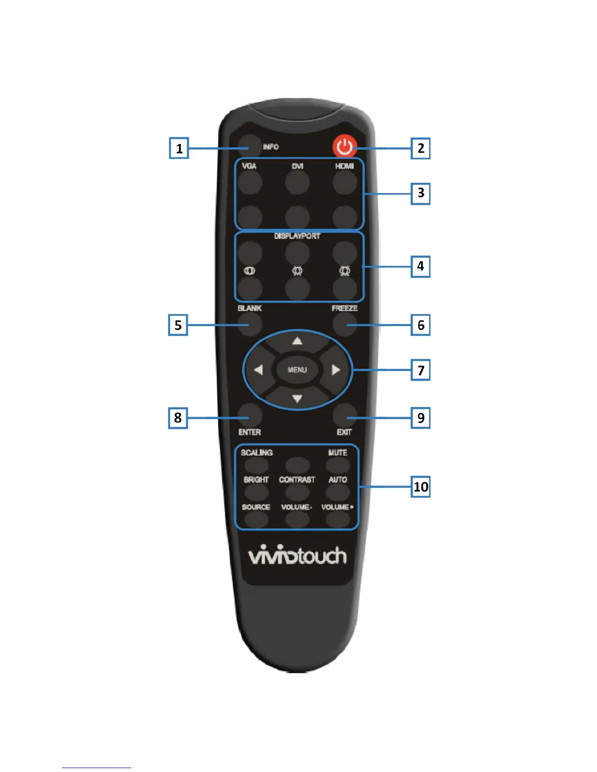 Figure 2-3 shows the display remote control, and Table 2-1 describes its functionality.