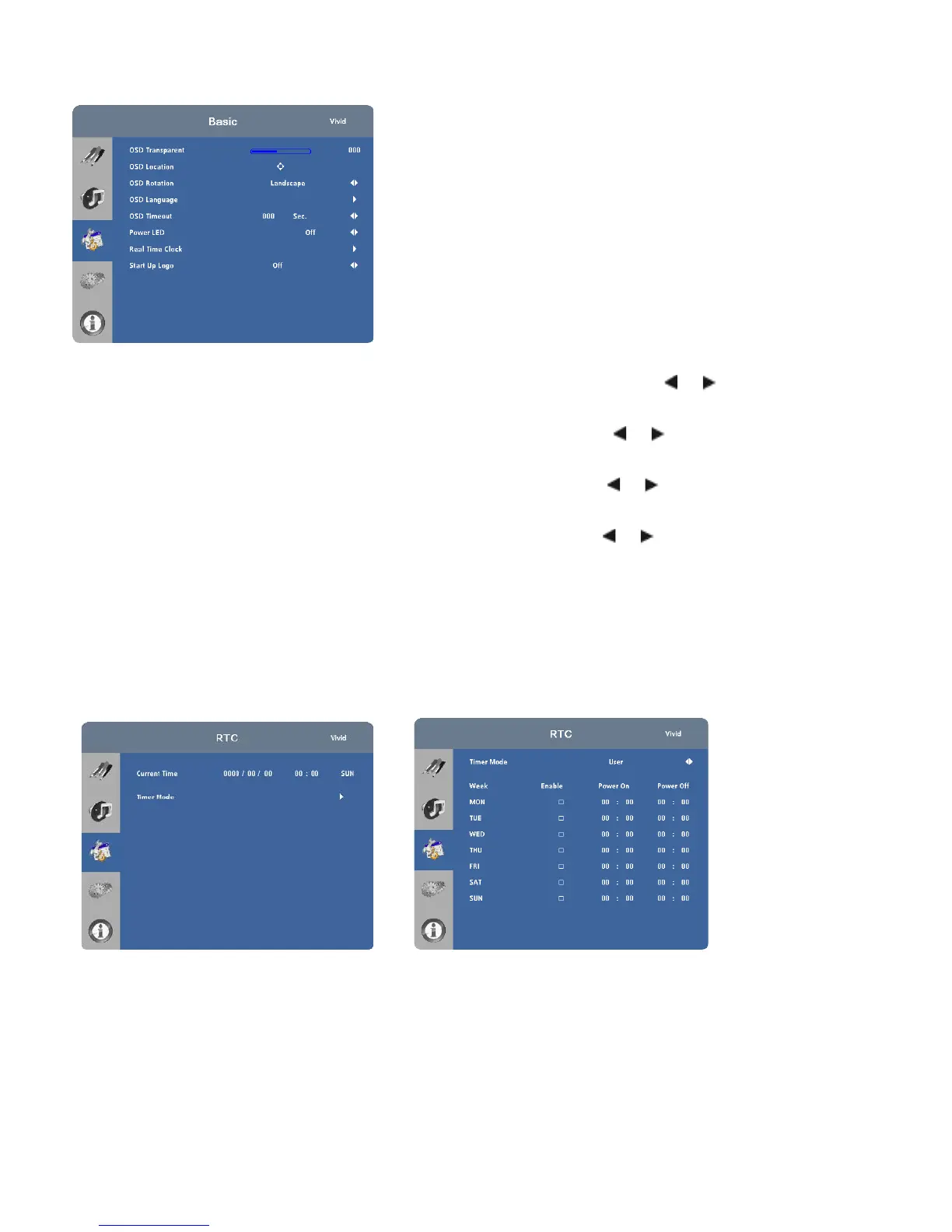 Select OSD Rotation from the Basic Settings menu and press or to change the orientation of the