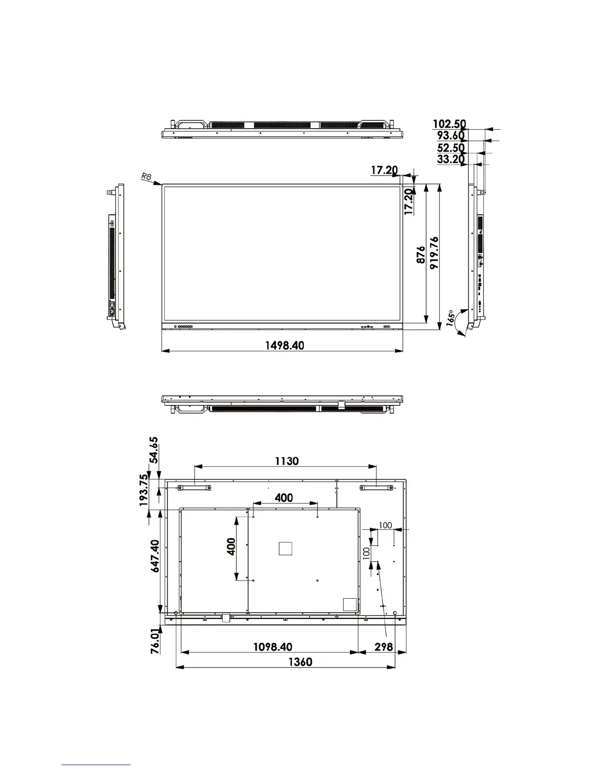 Figure 7-1 shows the display dimensions of VTF-6510 (all dimensions are in millimetres).