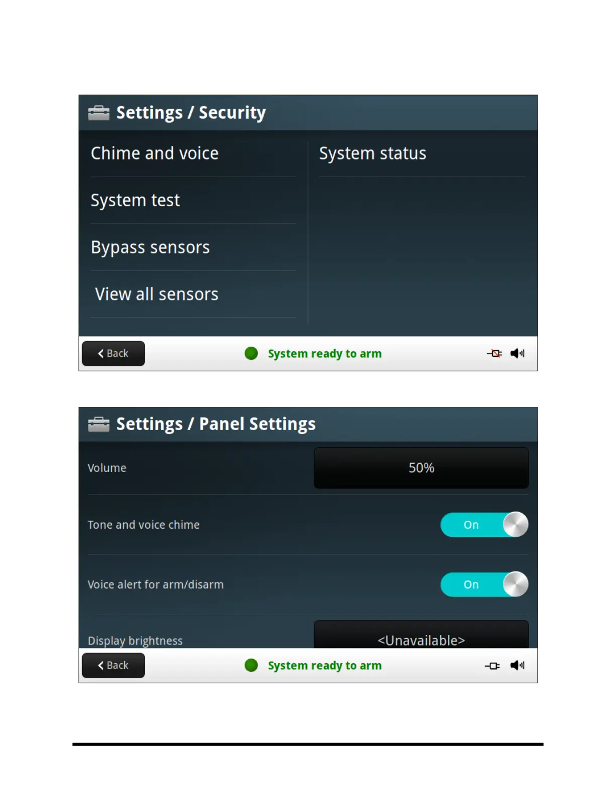 Panel Setti n g s Scree n