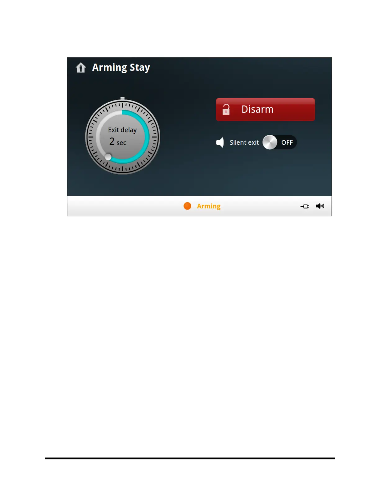 6. The system will arm and shows the Exit Delay counting down.